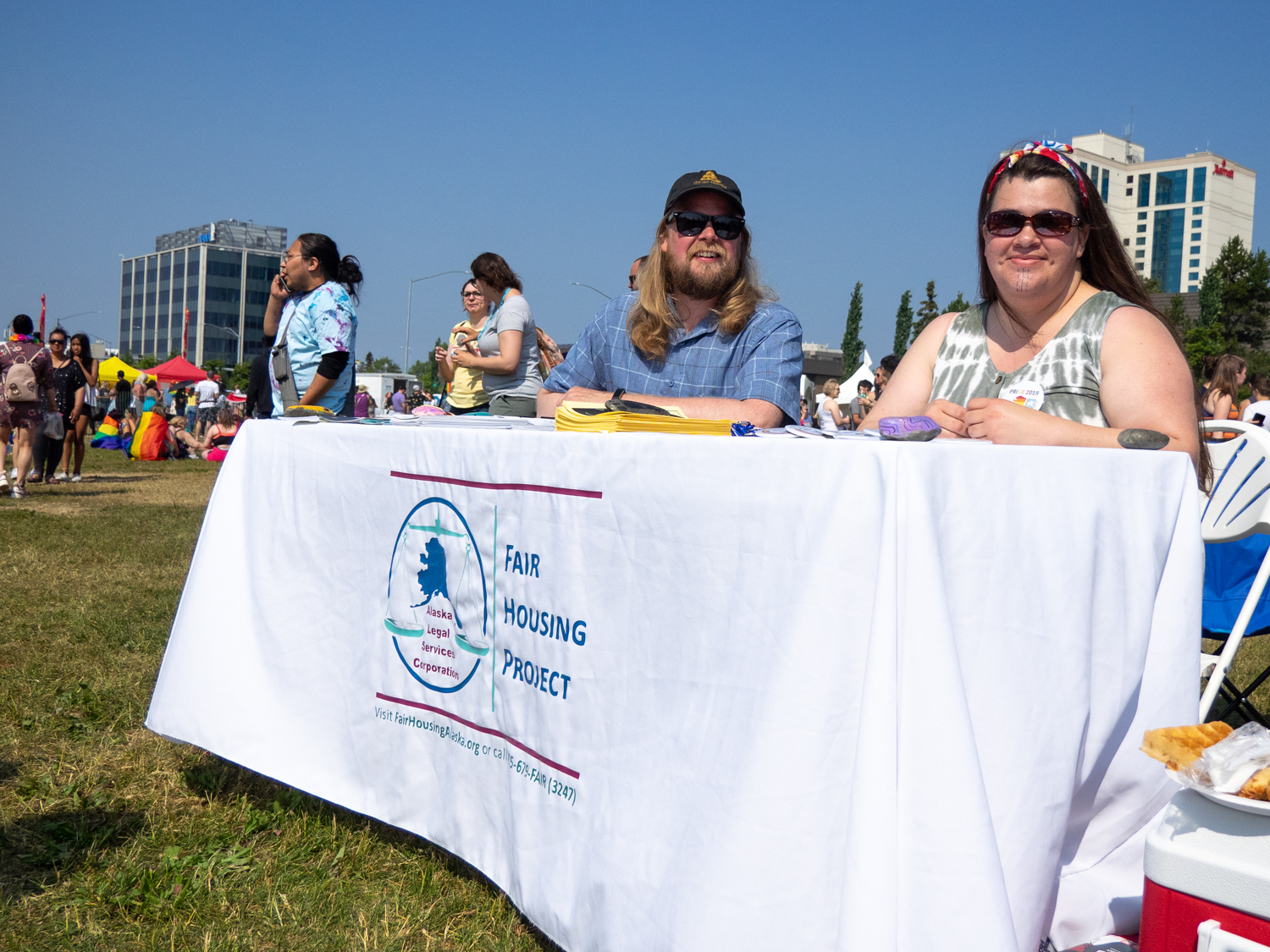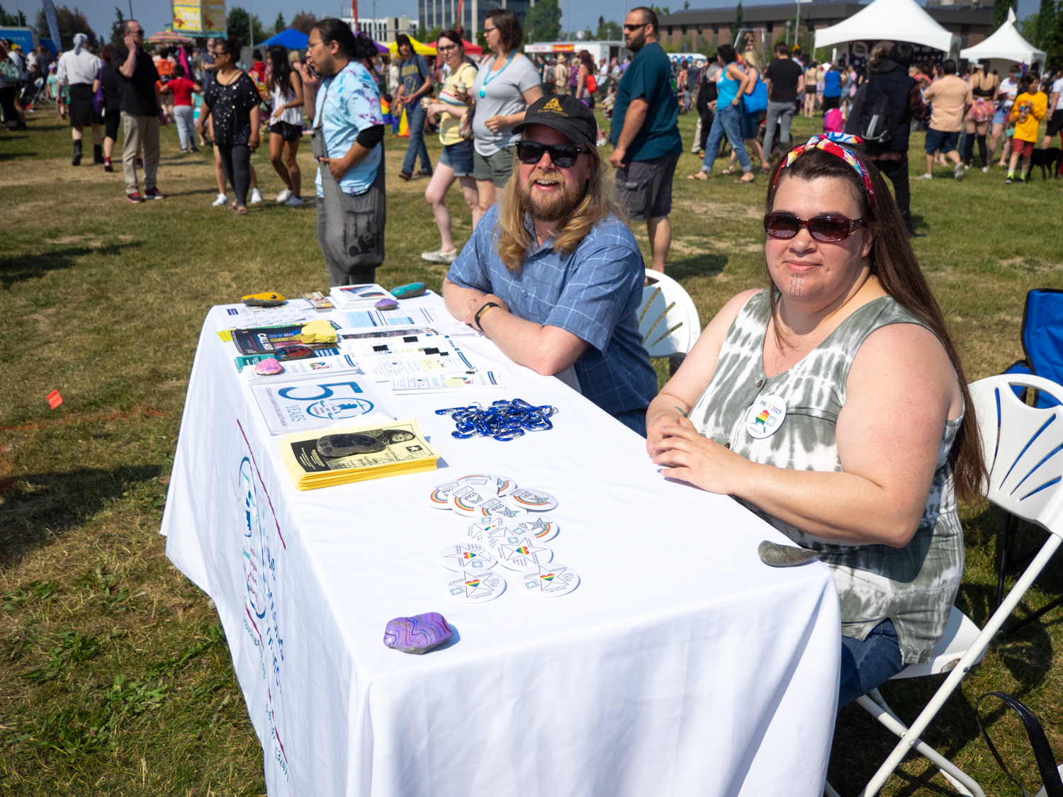 Dan Coons and Natasha Gamache doing Education and Outreach at the Anchorage PrideFest!